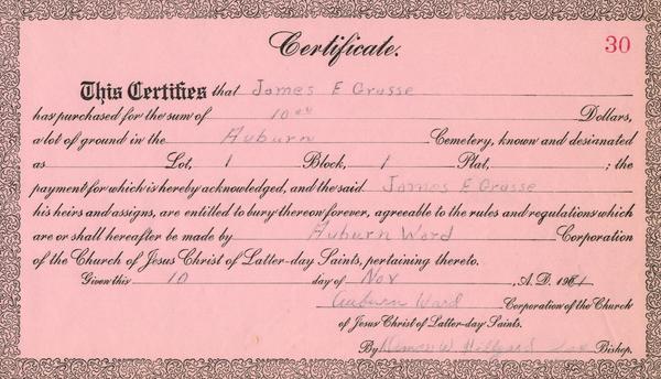 (Mouse over any thumbnail below to see a larger image of the headstone or deed.)