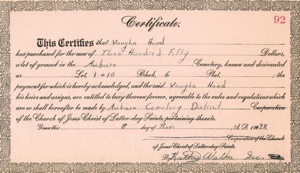 (Mouse over any thumbnail below to see a larger image of the headstone or deed.)