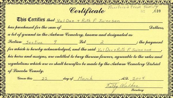(Mouse over any thumbnail below to see a larger image of the headstone or deed.)