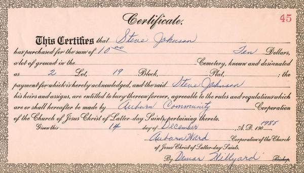 (Mouse over any thumbnail below to see a larger image of the headstone or deed.)