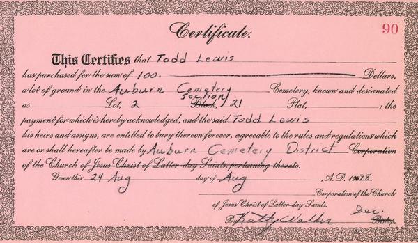 (Mouse over any thumbnail below to see a larger image of the headstone or deed.)