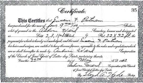 (Mouse over any thumbnail below to see a larger image of the headstone or deed.)