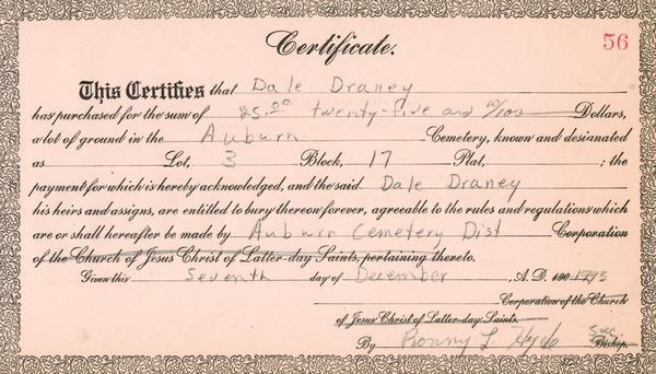 (Mouse over any thumbnail below to see a larger image of the headstone or deed.)