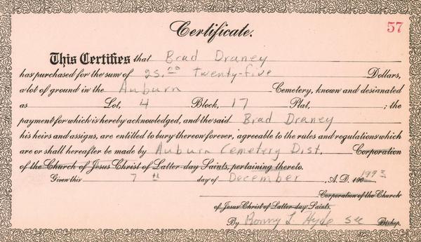 (Mouse over any thumbnail below to see a larger image of the headstone or deed.)