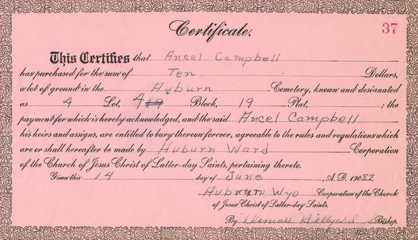 (Mouse over any thumbnail below to see a larger image of the headstone or deed.)