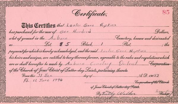 (Mouse over any thumbnail below to see a larger image of the headstone or deed.)