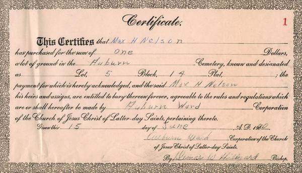 (Mouse over any thumbnail below to see a larger image of the headstone or deed.)