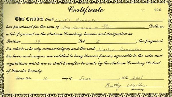 (Mouse over any thumbnail below to see a larger image of the headstone or deed.)