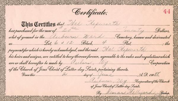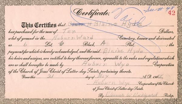 (Mouse over any thumbnail below to see a larger image of the headstone or deed.)