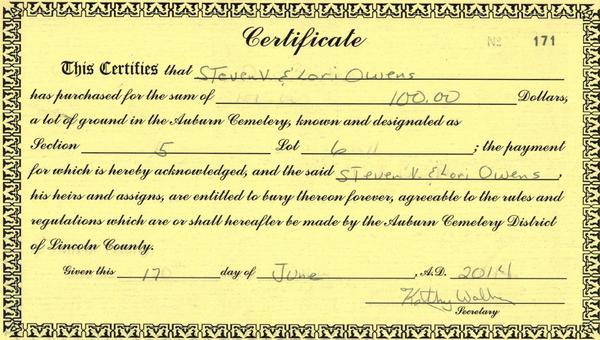 (Mouse over any thumbnail below to see a larger image of the headstone or deed.)