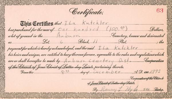 (Mouse over any thumbnail below to see a larger image of the headstone or deed.)