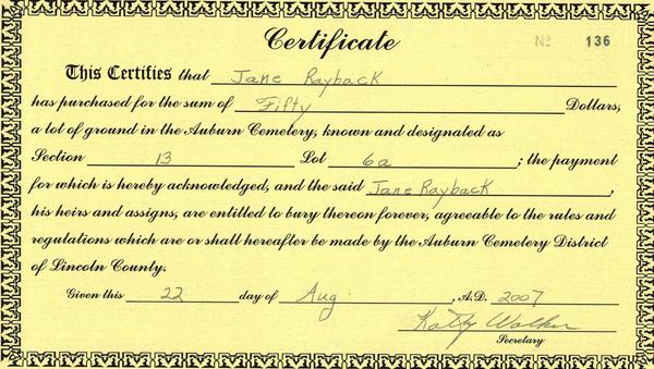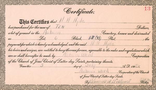(Mouse over any thumbnail below to see a larger image of the headstone or deed.)