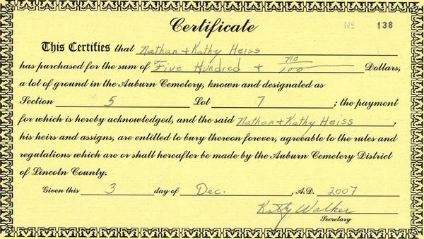 (Mouse over any thumbnail below to see a larger image of the headstone or deed.)