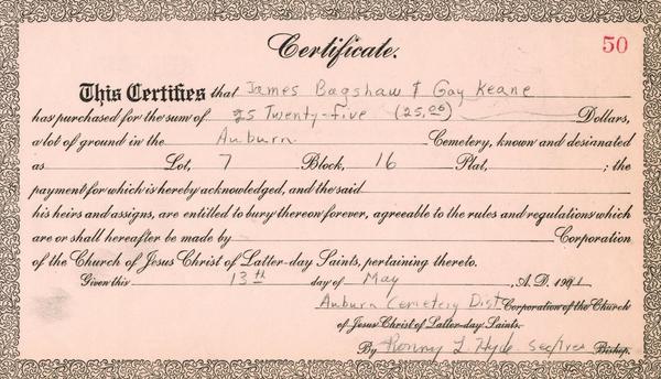 (Mouse over any thumbnail below to see a larger image of the headstone or deed.)