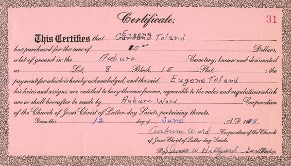 (Mouse over any thumbnail below to see a larger image of the headstone or deed.)