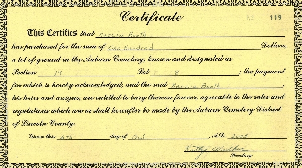 (Mouse over any thumbnail below to see a larger image of the headstone or deed.)