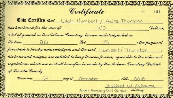 (Mouse over any thumbnail below to see a larger image of the headstone or deed.)