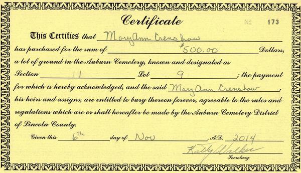 (Mouse over any thumbnail below to see a larger image of the headstone or deed.)