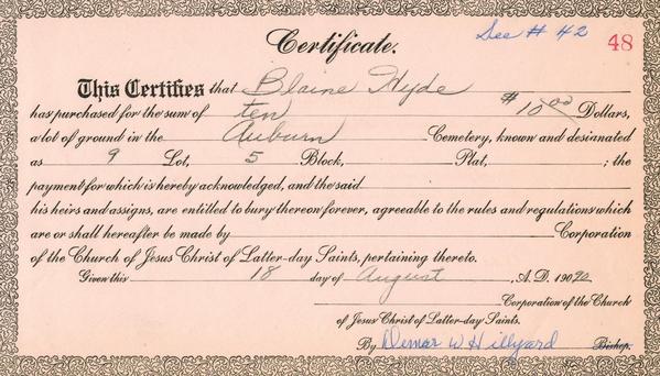 (Mouse over any thumbnail below to see a larger image of the headstone or deed.)