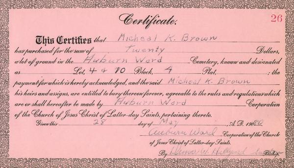 (Mouse over any thumbnail below to see a larger image of the headstone or deed.)