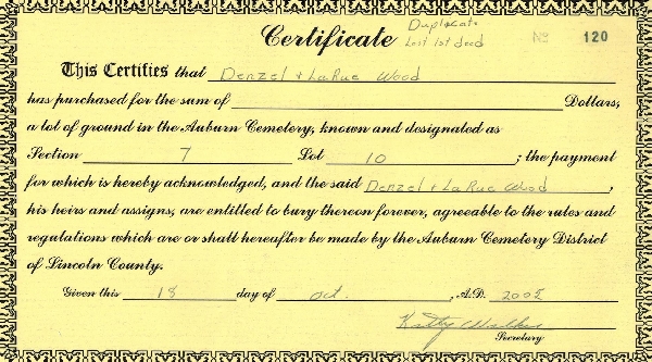 (Mouse over any thumbnail below to see a larger image of the headstone or deed.)