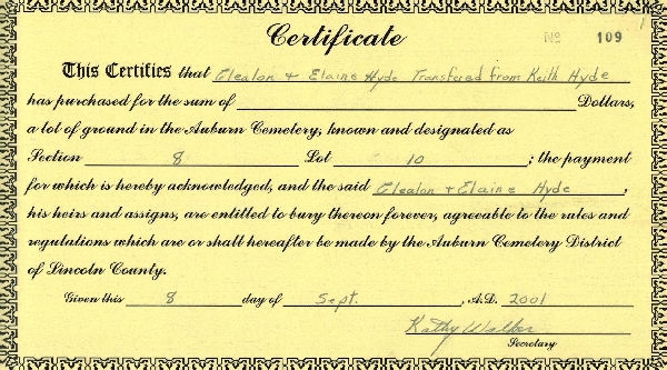 (Mouse over any thumbnail below to see a larger image of the headstone or deed.)