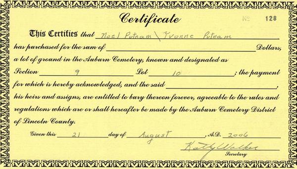 (Mouse over any thumbnail below to see a larger image of the headstone or deed.)