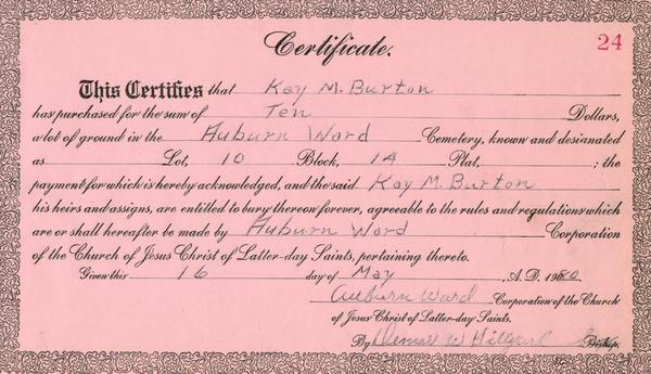 (Mouse over any thumbnail below to see a larger image of the headstone or deed.)