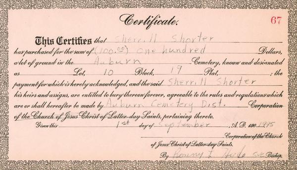 (Mouse over any thumbnail below to see a larger image of the headstone or deed.)