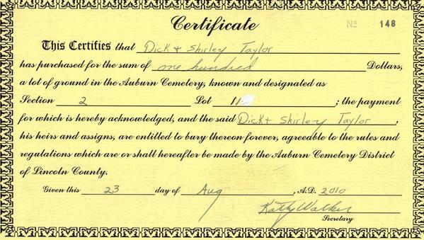 (Mouse over any thumbnail below to see a larger image of the headstone or deed.)