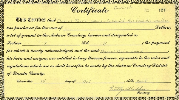 (Mouse over any thumbnail below to see a larger image of the headstone or deed.)