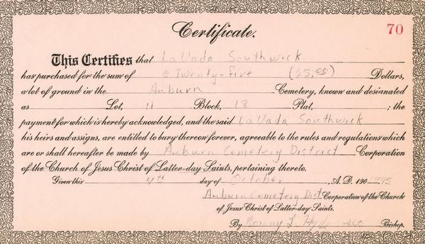 (Mouse over any thumbnail below to see a larger image of the headstone or deed.)