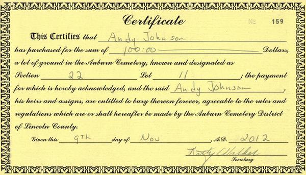 (Mouse over any thumbnail below to see a larger image of the headstone or deed.)