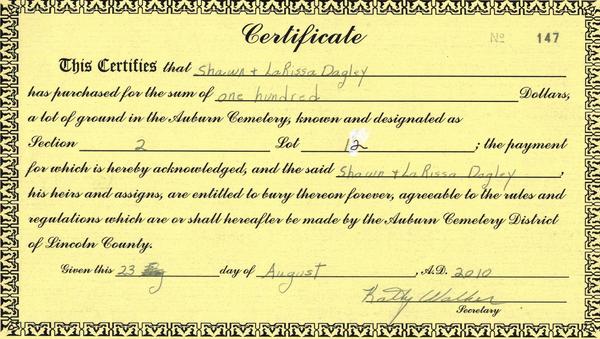 (Mouse over any thumbnail below to see a larger image of the headstone or deed.)
