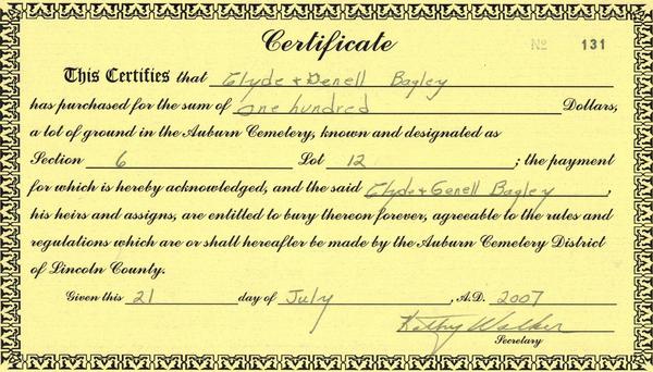 (Mouse over any thumbnail below to see a larger image of the headstone or deed.)