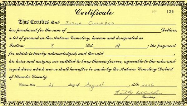 (Mouse over any thumbnail below to see a larger image of the headstone or deed.)