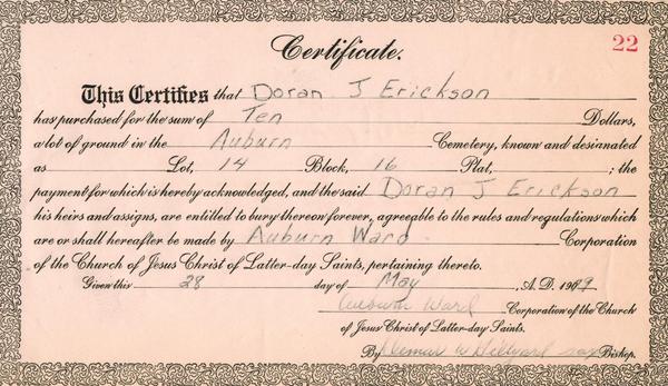 (Mouse over any thumbnail below to see a larger image of the headstone or deed.)