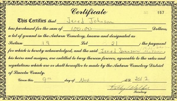 (Mouse over any thumbnail below to see a larger image of the headstone or deed.)