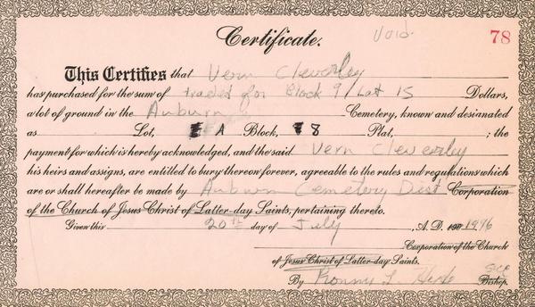 (Mouse over any thumbnail below to see a larger image of the headstone or deed.)