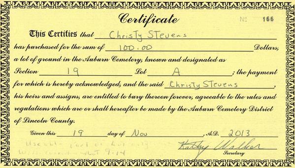 (Mouse over any thumbnail below to see a larger image of the headstone or deed.)