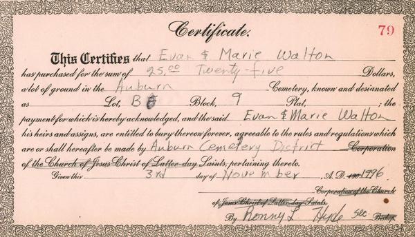 (Mouse over any thumbnail below to see a larger image of the headstone or deed.)
