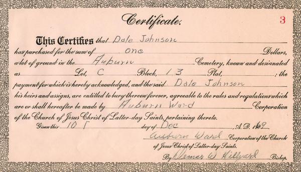 (Mouse over any thumbnail below to see a larger image of the headstone or deed.)