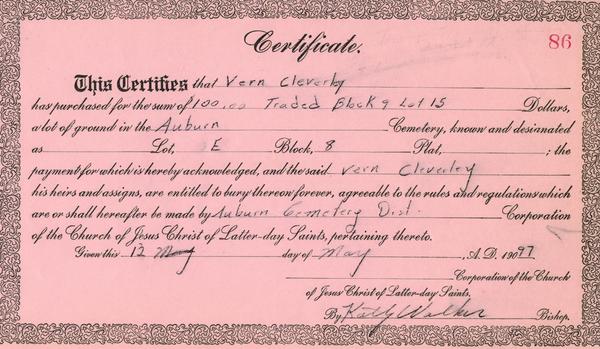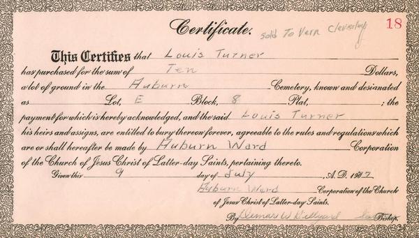 (Mouse over any thumbnail below to see a larger image of the headstone or deed.)