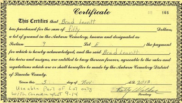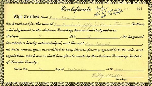 (Mouse over any thumbnail below to see a larger image of the headstone or deed.)